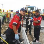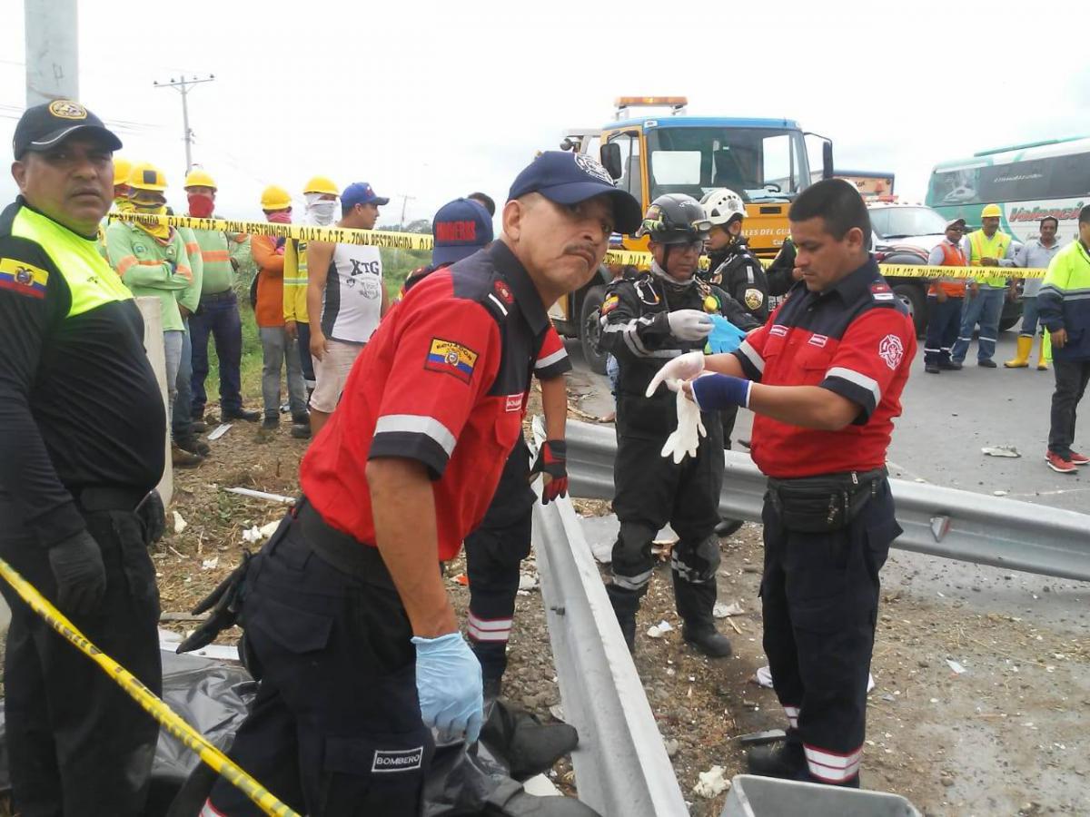 Momento en el que el cuerpo de bomberos de yaguachi al mando del Tcrnl. Jorge insuasti asiste a un accidente a la altura de la t de milagro, via yaguachi-jujan, el cual una cooperativa de transporte la mana, placas xaa-2196 se impacta contra una baranda ocasionando el fallecimiento de 3 personas, y heridas en el resto de `pasajeros, asimismo en esta acción colaboraron sub Tnt. Luis González, Sgto. Mario Gonzalez, Bomb. Cinthia Cáceres.